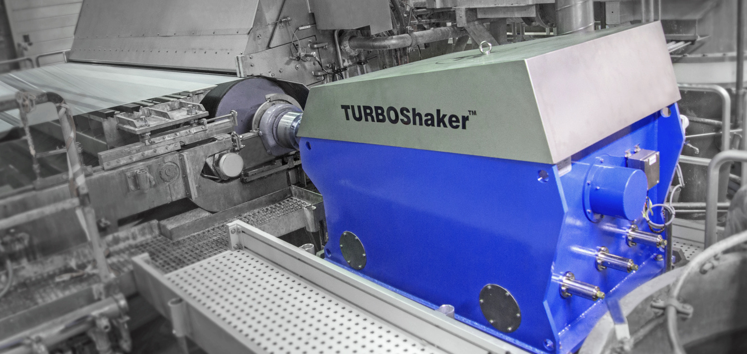 特性。通過精确設定搖振器的運行參數,操作 員很容易調節搖振沖程和頻率,從而獲得最佳 水平的紙和紙闆質量。TurboShaker 搖振器的 獨特傳動設計使其具有占地面積小的特點,從 而使搖振器成爲升級現有網部成型器的理想 設備。