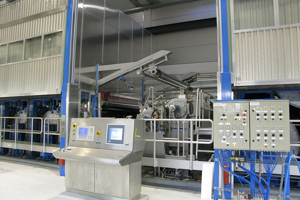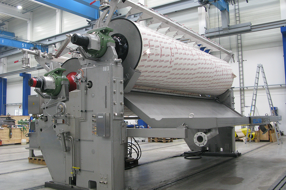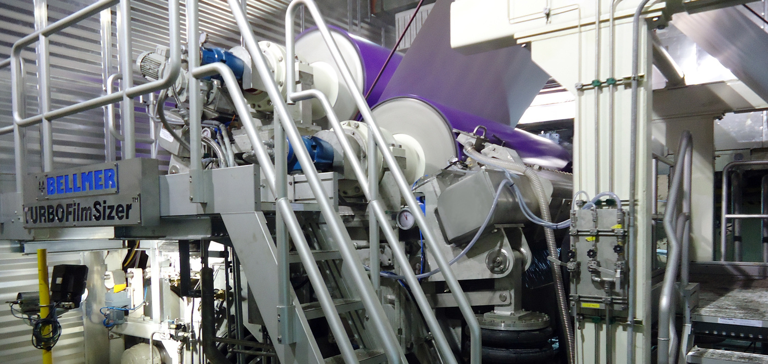 Bellmer 的 TurboSizer 浸泡式施膠機改善印刷用 紙和特種紙的強度性質。也可用作任何纖維薄 片浸漬化學添加劑。紙闆的浸膠加工是浸泡式 施膠機的另一項特别功能。特制的 SizeSpoons 膠料噴頭及可調節的溢流料鬥,使施膠機具有 膠料分布均勻,清潔操作和完美浸泡池液位控 制的優點。